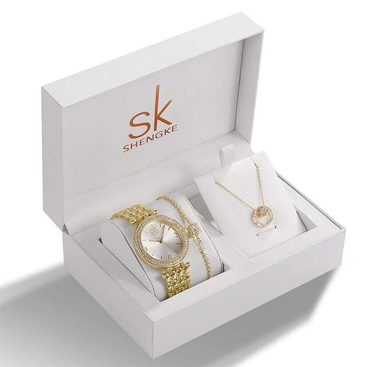 Luxury Women's Quartz Watch, Crystal Necklace & Bracelet Jewelry SetRegular price £75.40 GBPRegular priceUnit price per£95.80 GBPSale price £75.40 GBPSale