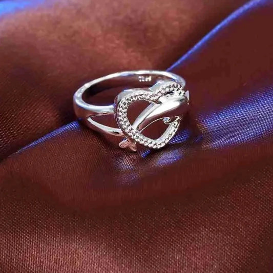 Dolphin Heart with Cubic Zirconia 925 Sterling Silver Women’s Ring
