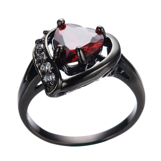 Red Heart & White Cubic Zirconia Black Engagement Ring