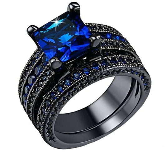 Black Brushed Matte & Blue Inlay Tungsten Carbide Band and Blue Zirconia Wedding Ring Set
