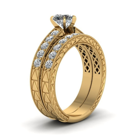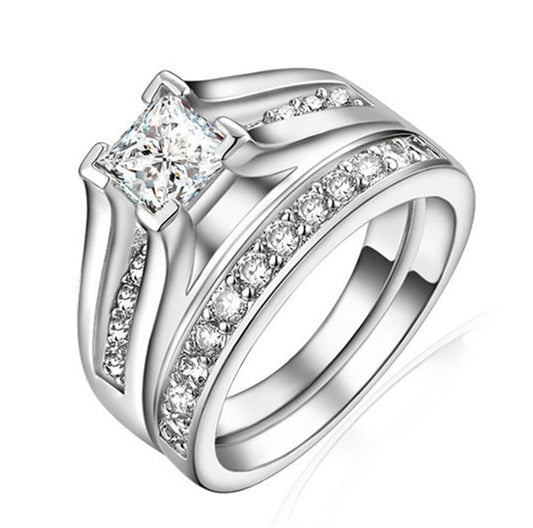 Silver & Gold-plated Tungsten Carbide and White Zirconia Wedding Ring Set