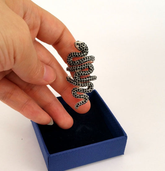 Silver Plated Snake with Black Cubic Zirconia Ring Jewelry