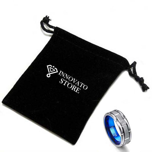 8mm Brick Brushed Pattern Tungsten carbide with Blue Color Wedding Ring