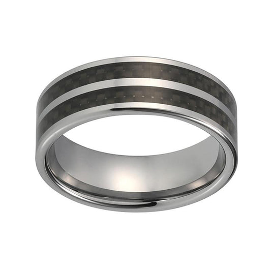 8mm Black Carbon Fiber Inlay Silver Plated Tungsten Carbide Wedding Ring