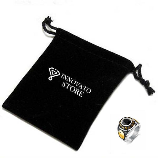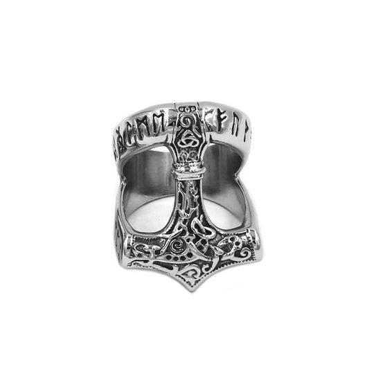 Silver and Ebony Accented Stainless Steel Tribal Thor's Hammer Men’s Ring