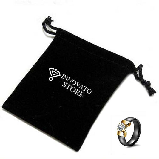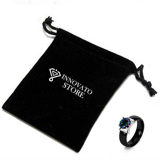 Black Tone Ceramic Engagement or Wedding Ring for Women with Rainbow Mystic Zircon