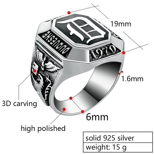 925 Sterling Silver B Letter Hip Hop Ring for Men