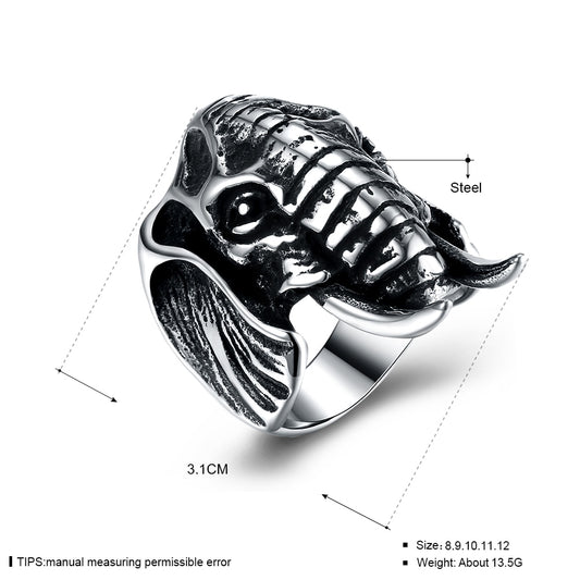 Gothic Titanium Steel Middle Finger Ring for Men with an Triceratops Biker Ring