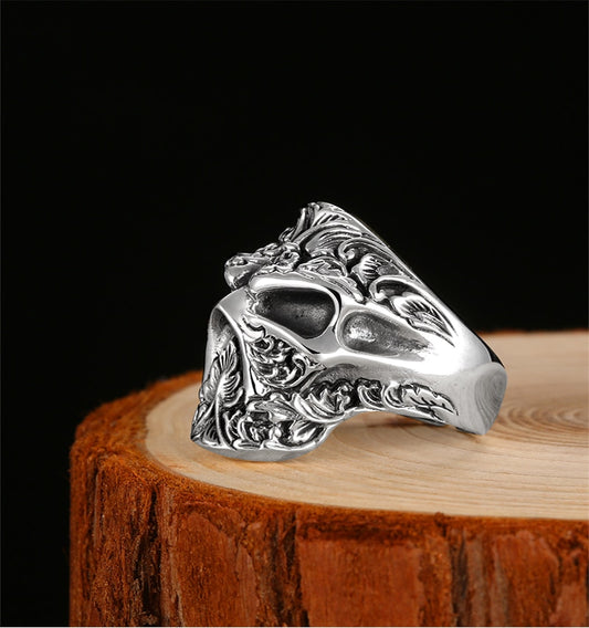 Gothic 925 Sterling Silver Sugar Skull Ring for Men Adjustable
