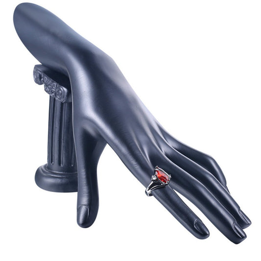 Black Toned Marquise Cut Crimson Red Stone Inset Women’s Engagement Ring