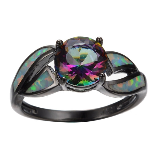 Sapphire Opal Black Gold-Filled Engagement Ring