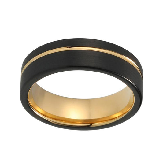 8mm Black Brushed Matte Offset with Gold Plated Groove Tungsten Carbide Ring