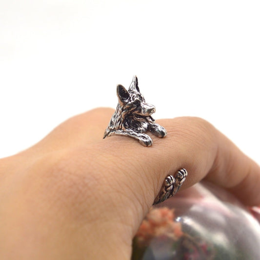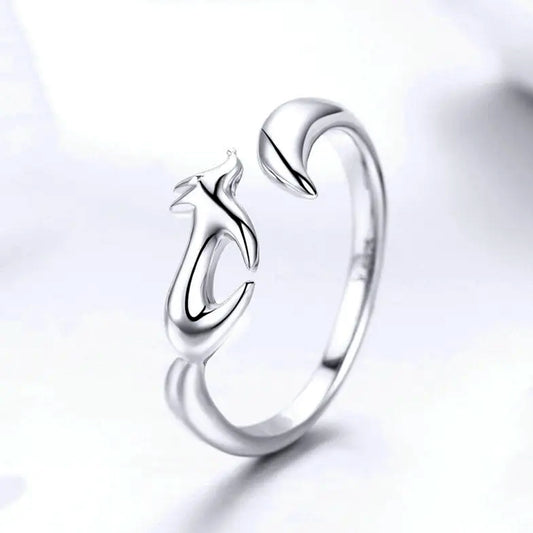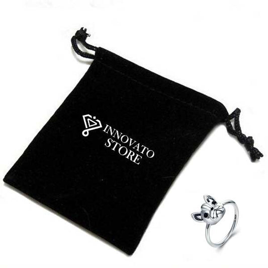 925 Sterling Silver Loyal Friend French Bulldog Animal Ring for Women with Two Black Zircons as Eyes