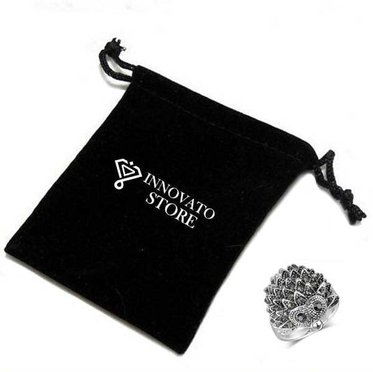 Silver Plated Hedgehog Ring with Multiple Gray CZ Stones