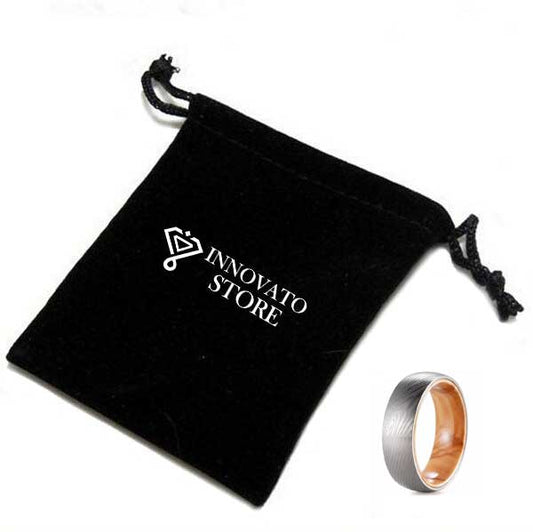 Titanium Matte Finish Fingerprint Pattern 8mm Ring for Men with Mahogany Koa Wood Inlay