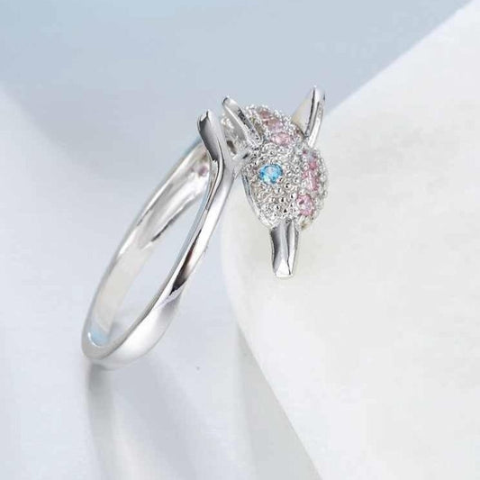 Pink Zircon Dolphin Ring with Australian Blue Crystal Eyes 925 Sterling Silver