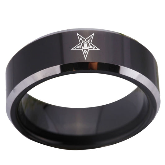 8mm Tungsten Carbide Black Toned Eastern Star Masonic Unisex Engagement and Wedding Ring