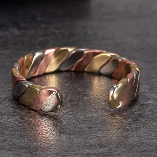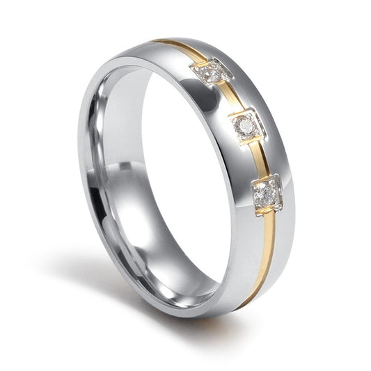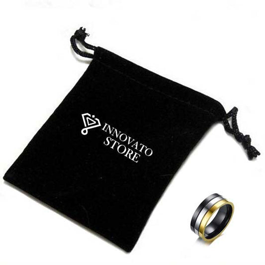 Three-In-One Black Silver Gold Plated Stainless Steel Ring