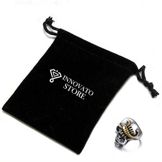 Half-Crush Skull with Gold Plated Crawling Scorpion Biker Ring