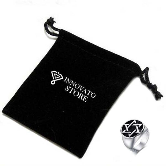 Stainless Steel Ring with Star of David Inlay