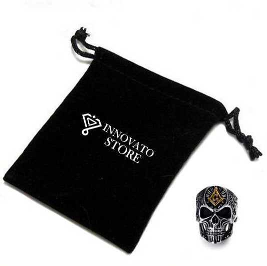 Silver & Gold Plated Stainless Steel Masonic Skull Ring