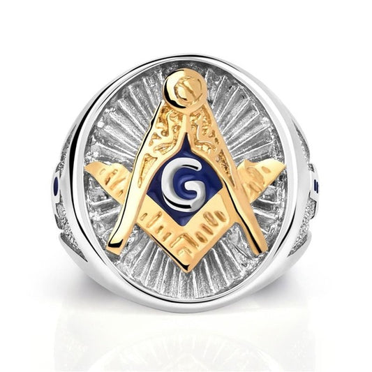 Stainless Steel Silver & Gold Plated Freemason Ring for Men