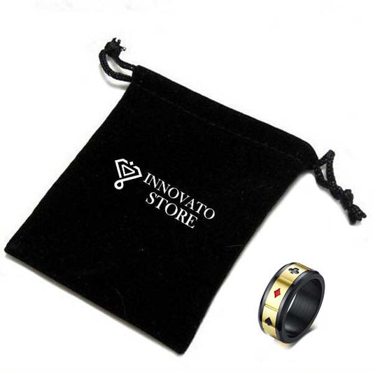 Black Spinner Tungsten Carbide with Beveled Edges and Rectangular Poker Card Shape Gold Plated Ring