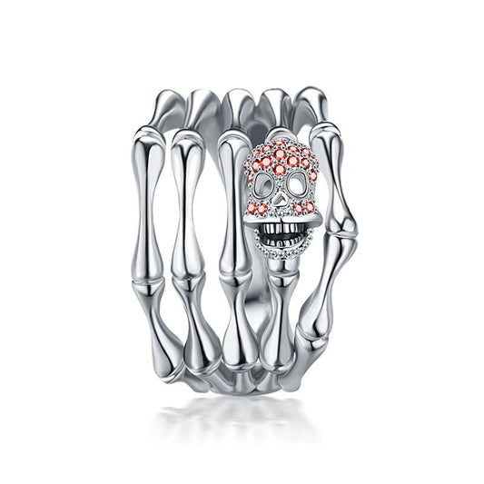 Skull and Skeleton Hand Cubic Zirconia Biker Ring