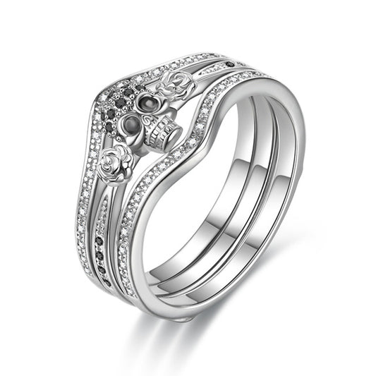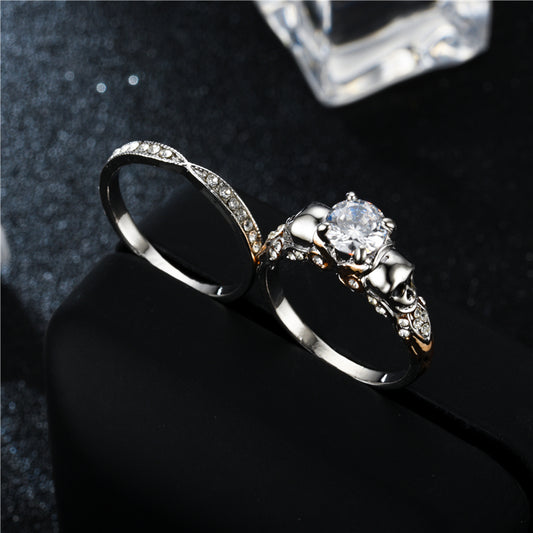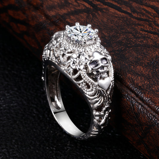 Silver Skull Cubic Zirconia Punk Style Engagement Ring