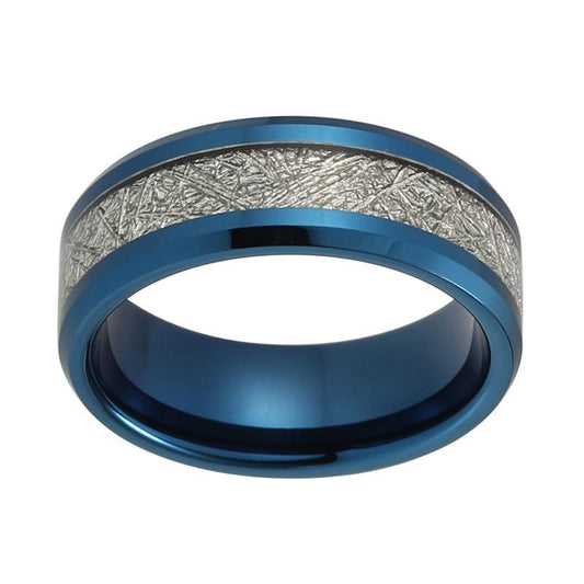 8mm Blue Tungsten Carbide Ring with Meteorite Inlay for Men and Women