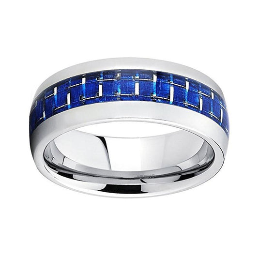 8mm Blue Gel Basket Weave Inlay with Silver-Tungsten Carbide Ring