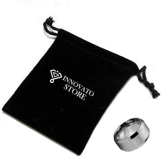 Silver Brushed Matte Center Tungsten Carbide Wedding Ring with Beveled Edge