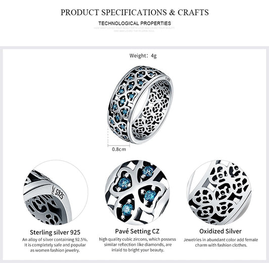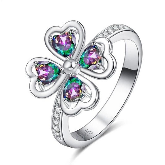 925 Sterling Silver Connected Lucky Clover with Blue Zirconia Ring