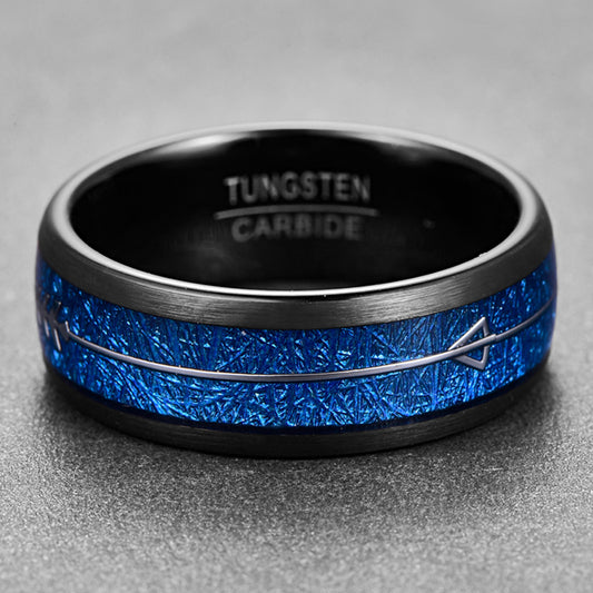 Arrow Design Blue Meteorite Tungsten Carbide Ring