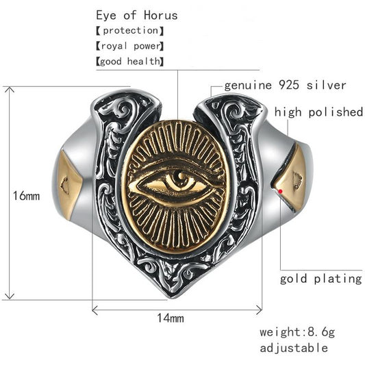 925 Sterling Silver and Gold Eye of Horus Adjustable Ring