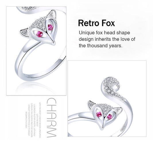 925 Sterling Silver Pink Eyes Fox Vintage Style Ring for Women