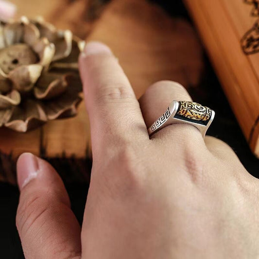 925 Silver Tibetan with Golden Om Bead Resizable Ring