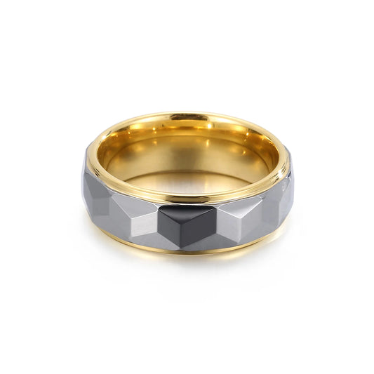 Golden Brown Center with Geometric Silver Coated Tungsten Carbide Wedding Ring
