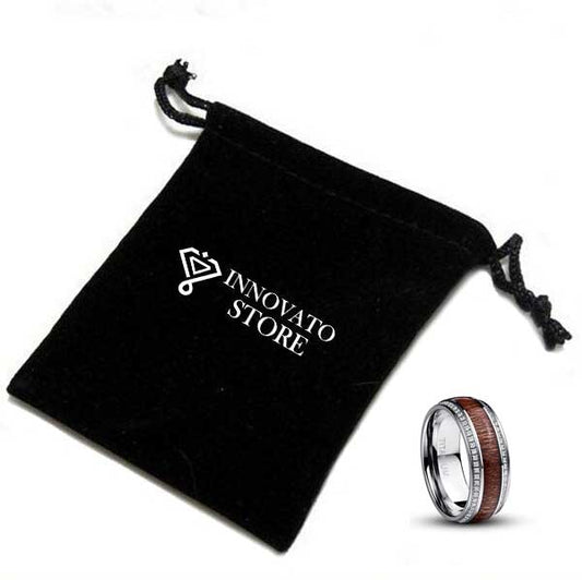 8mm Acacia Wood Inlay with CZ Stone Titanium Steel Ring