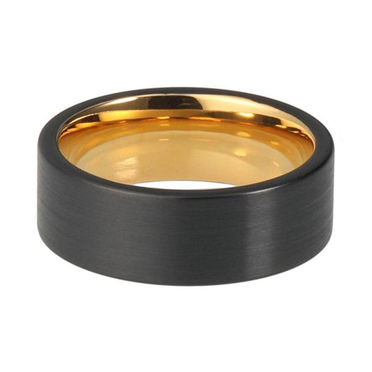 8mm Black Brushed Matte Tungsten Carbide with Yellow Gold Coated Surface Wedding Ring
