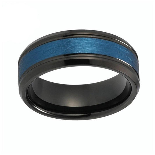 8mm Blue Center with Grooved Black Tungsten Carbide Wedding Ring