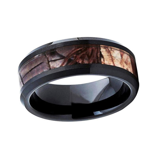 Silver Coated Tungsten carbide Metal with Camo Forest Design Inlay Wedding Ring