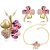 This Jewelry Set by Innovato Store brings luck to its wearer as the four-leaf clover symbolizes. For you to enjoy the party more and be fashionable too, you can wear these pieces of jewelry. Made of 316L stainless steel, this jewelry set has a smooth, glossy finish, and polished surface all over the link chain, pendant, and earring backs. The necklace has a fine link chain whose pendant is a four-leaf clover that has a heart cut "pick your color" bezel-set crystal as the two leaves, one leaf being ingrained with round brilliant cut white pave-set crystals, and the remaining leaf being solid steel. The bracelet has an ornament that is the same as the pendant of the necklace, so as the earrings. Product Highlights: Made of 316L stainless steel Comes in nineteen fashionable colors Necklace pendant length: 26mm; Width: 21mm Bracelet ornament width: 15mm Earring length: 13mm Durable, tarnish-resistant, corrosion-resistant, rust-proof, extremely light, and scratch-proof stainless steel